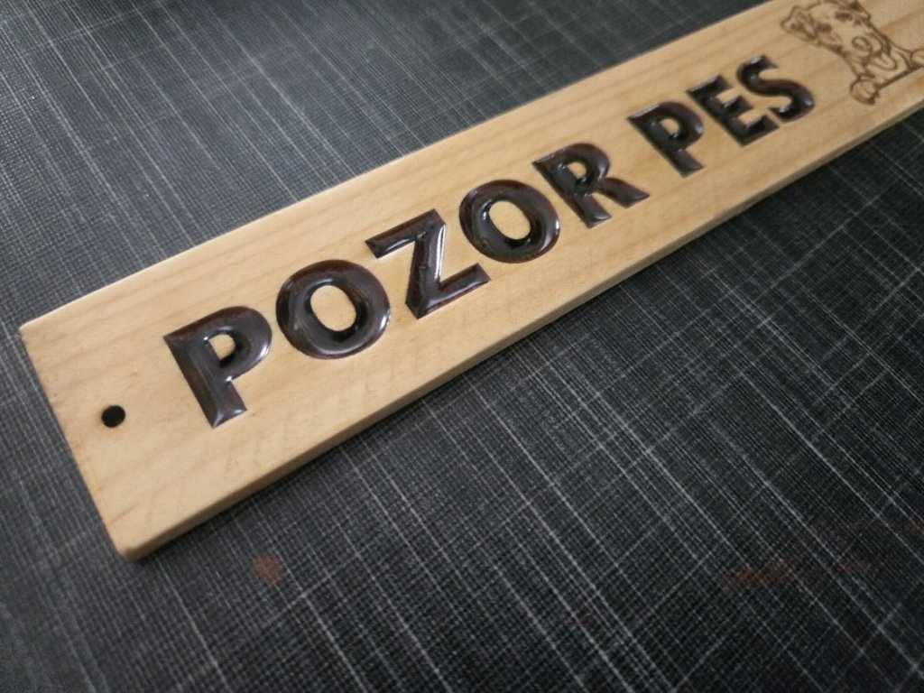 Stylová dřevěná cedulka "Pozor pes" s gravírováním – ideální kombinace funkčnosti a designu. Každý kousek vyrábíme s důrazem na detail z kvalitního dřeva a můžete si jej upravit podle svých představ – jméno psa, jiný text, nebo třeba vtipný nápis.