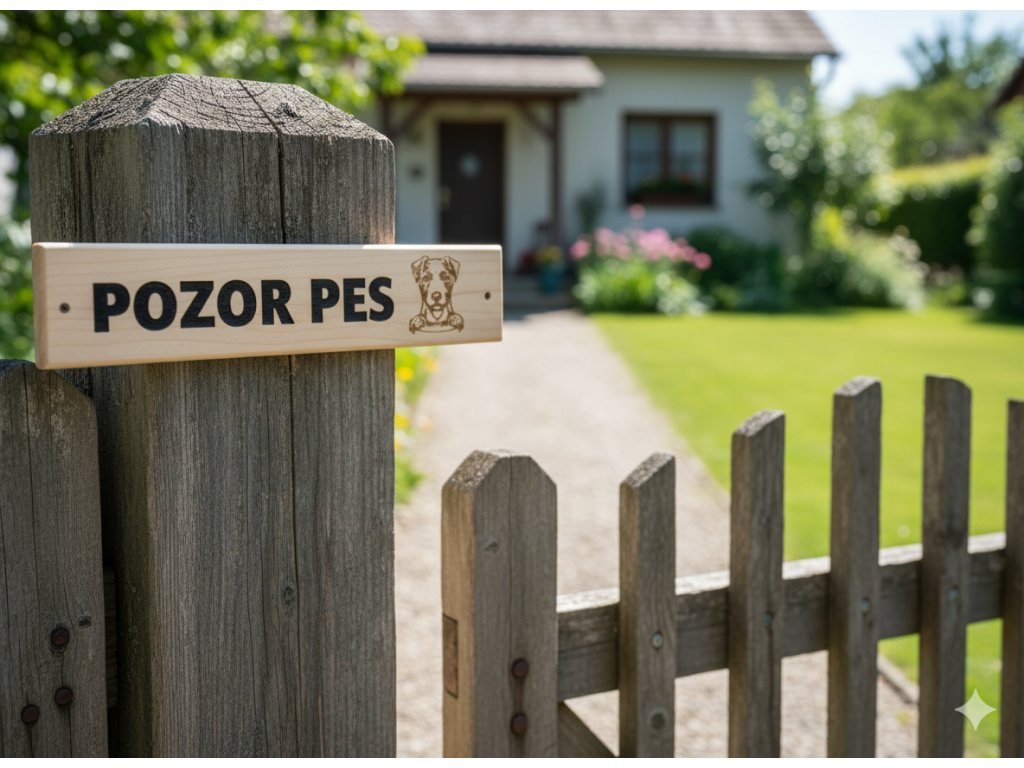 Dřevěná cedulka POZOR PES – originální varování s osobitým stylem