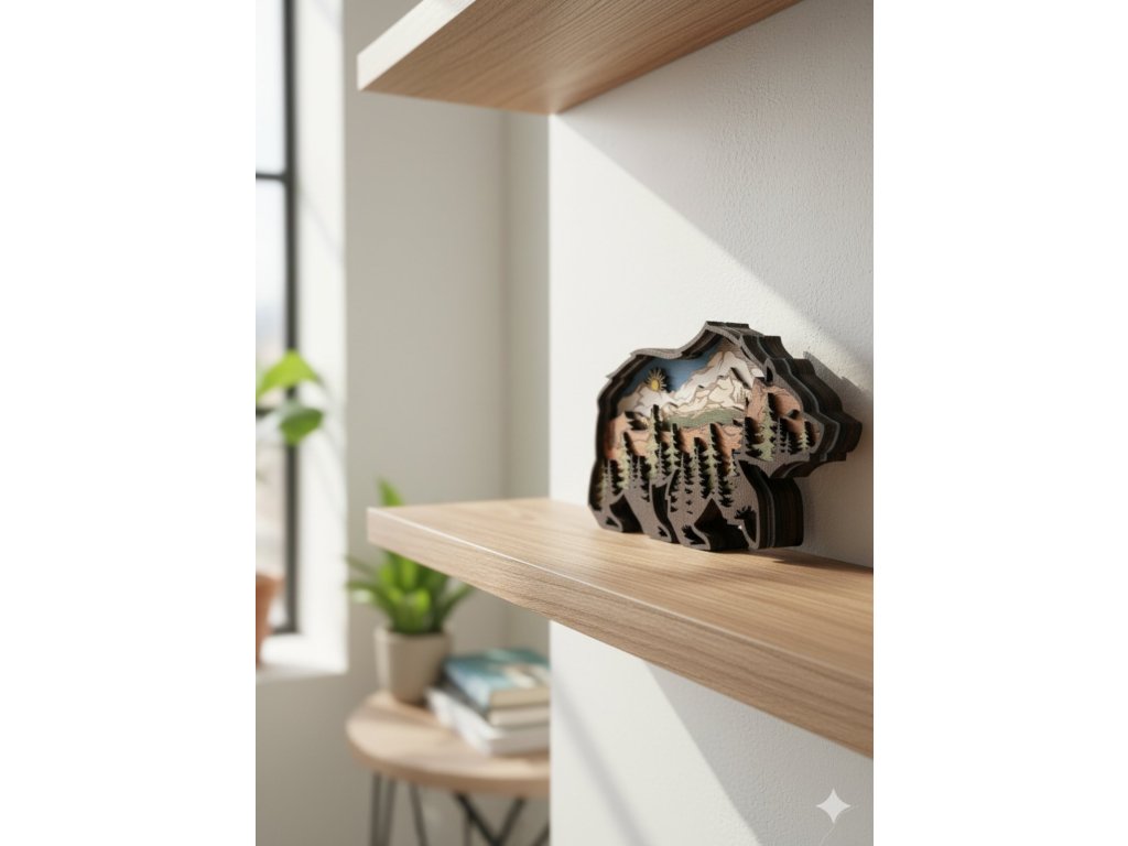 Oživte svůj interiér s touto samostatně stojící 3D dřevěnou dekorací s motivem medvěda. Ručně vyrobená z kvalitního dřeva, tato dekorace přináší do vašeho domova nádech přírody a divočiny. Skvěle se hodí na poličku, pracovní stůl nebo do obývacího pokoje, kde dodá prostoru jedinečný charakter a šarm.