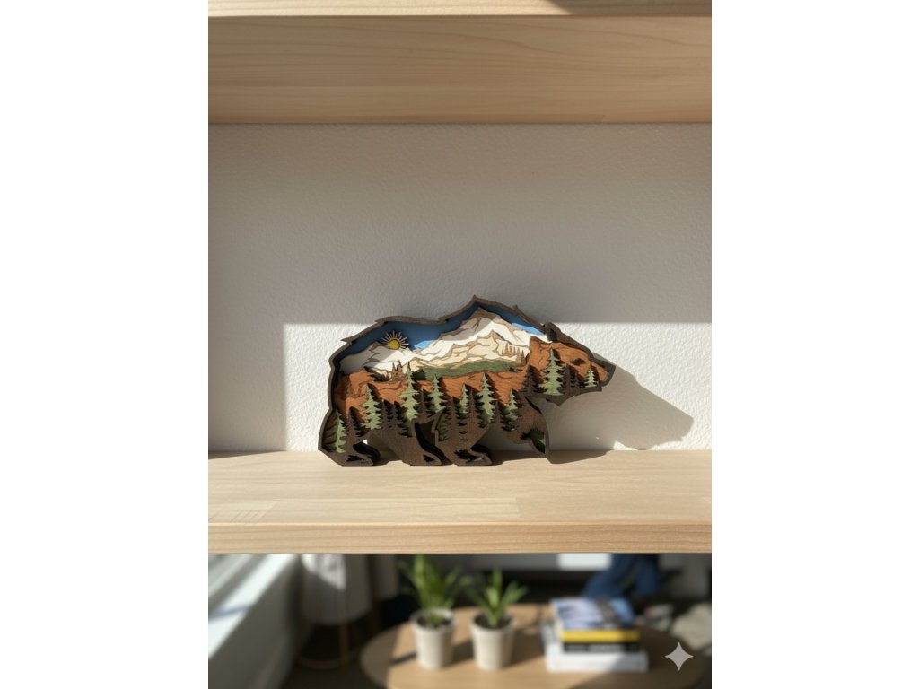 Tato dřevěná dekorace s motivem medvěda je skvělým dárkem pro milovníky přírody a divoké zvěře a ideálním doplňkem pro váš domov či kancelář. Přineste si kousek přírody do vašeho prostoru!