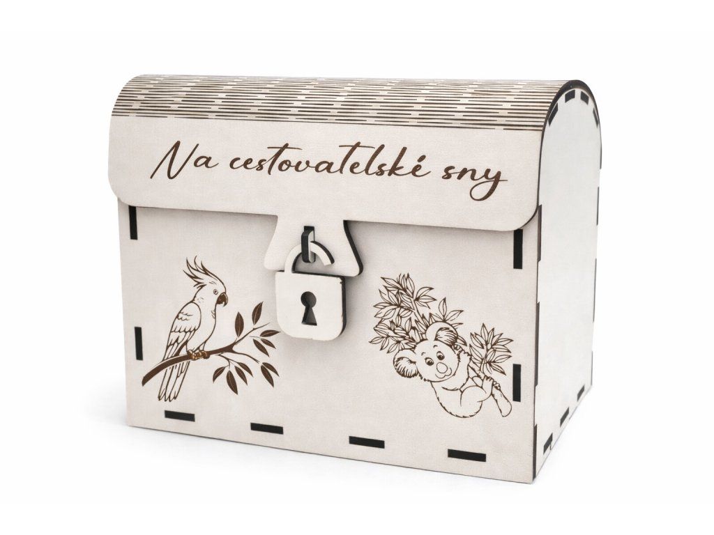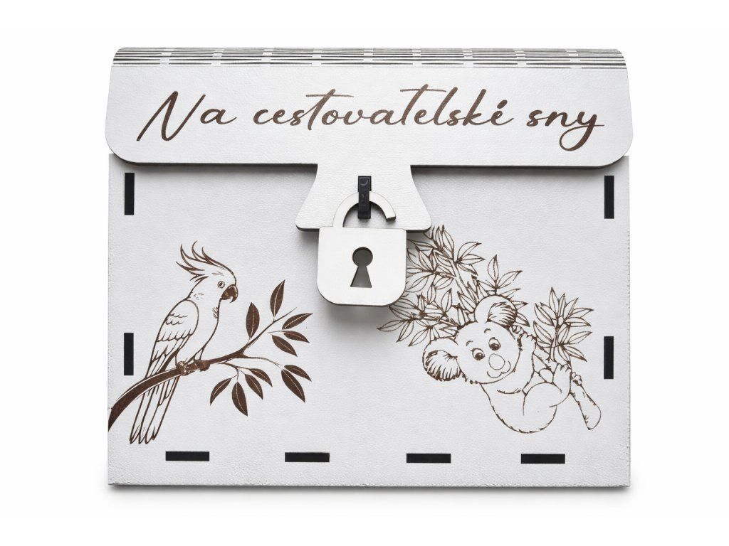 Designová pokladnička - Na cestovatelské sny Stylové spoření na dovolenou, zážitky a sny