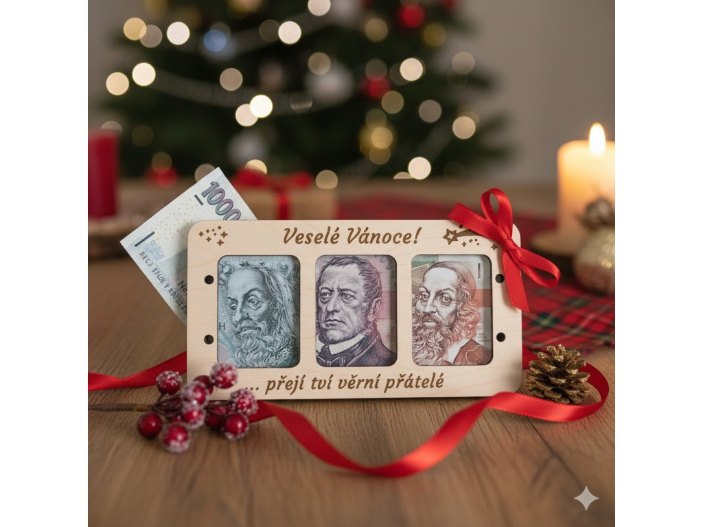 Dřevěná obálka na peníze - Vánoční - přátelé