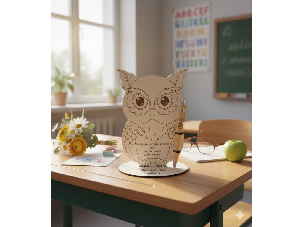 Hledáte originální a praktický dárek pro učitelku, učitele nebo paní vychovatelku ve školce? Tento elegantní držák na propisky ve tvaru sovy je tou správnou volbou! Symbol moudrosti – sova – krásně vystihuje pedagogickou profesi a stane se milým i užitečným doplňkem na každém pracovním stole.