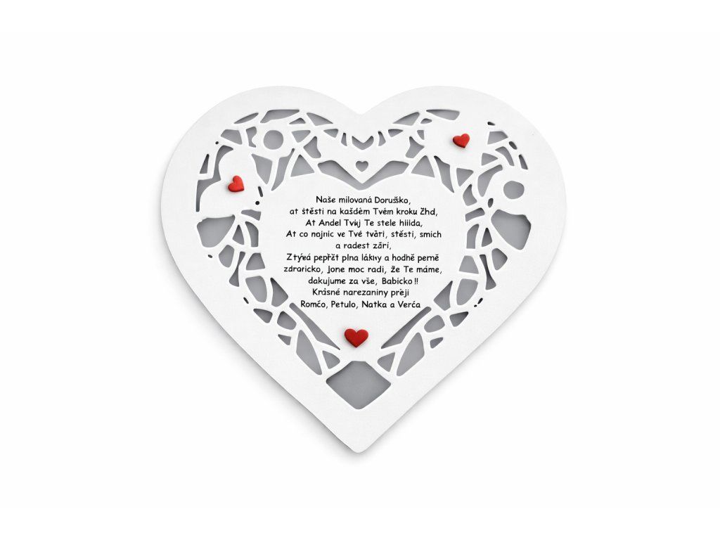 Elegantní dřevěné srdce v bílé barvě je ideální dekorací do vašeho domova a zároveň krásným osobním dárkem. Je vyrobeno z kvalitní HDF desky o tloušťce 3 mm a nabízí možnost vlastního gravírovaného textu – věnování, jména nebo krátkého vzkazu podle vašeho přání.