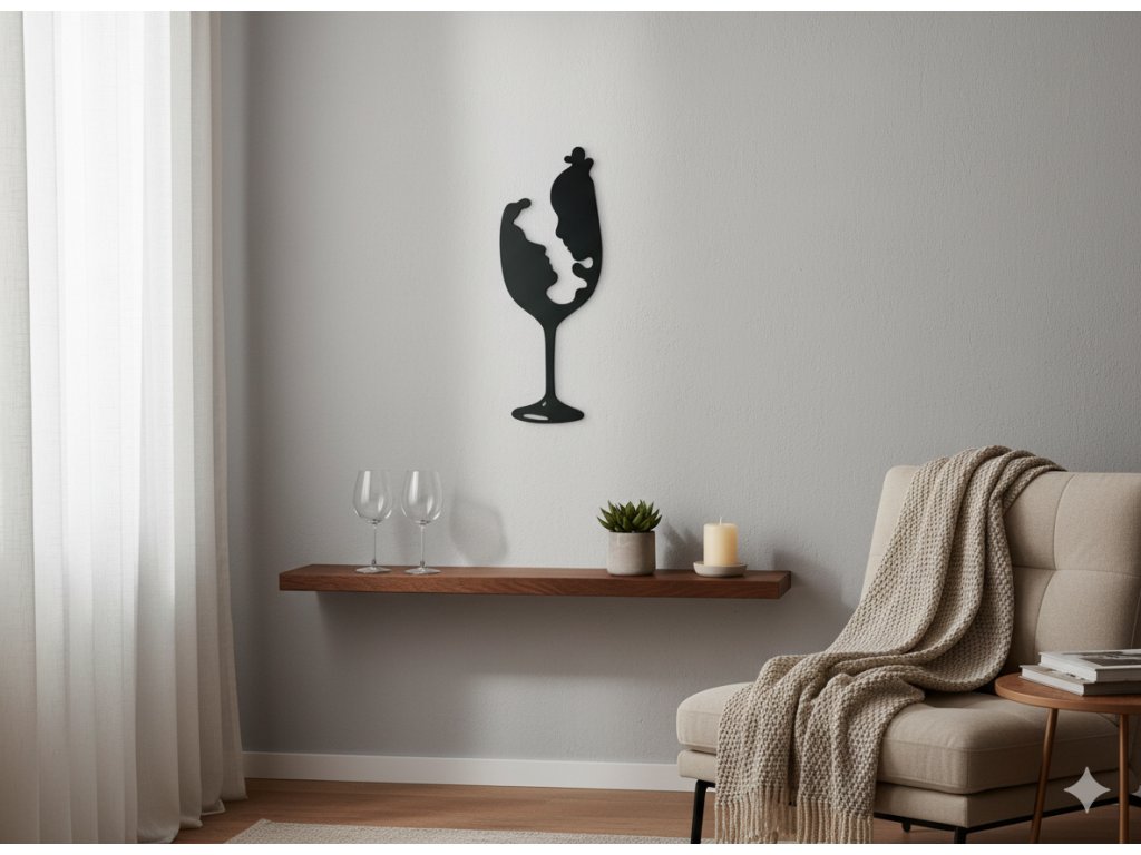 Minimalistická dekorace zobrazující dva obličeje milenců z profilu, které spolu tvoří jednoduchý a výrazný motiv. Tento stylový design symbolizuje blízkost a lásku a díky své čistotě se hodí do moderních i útulných interiérů.