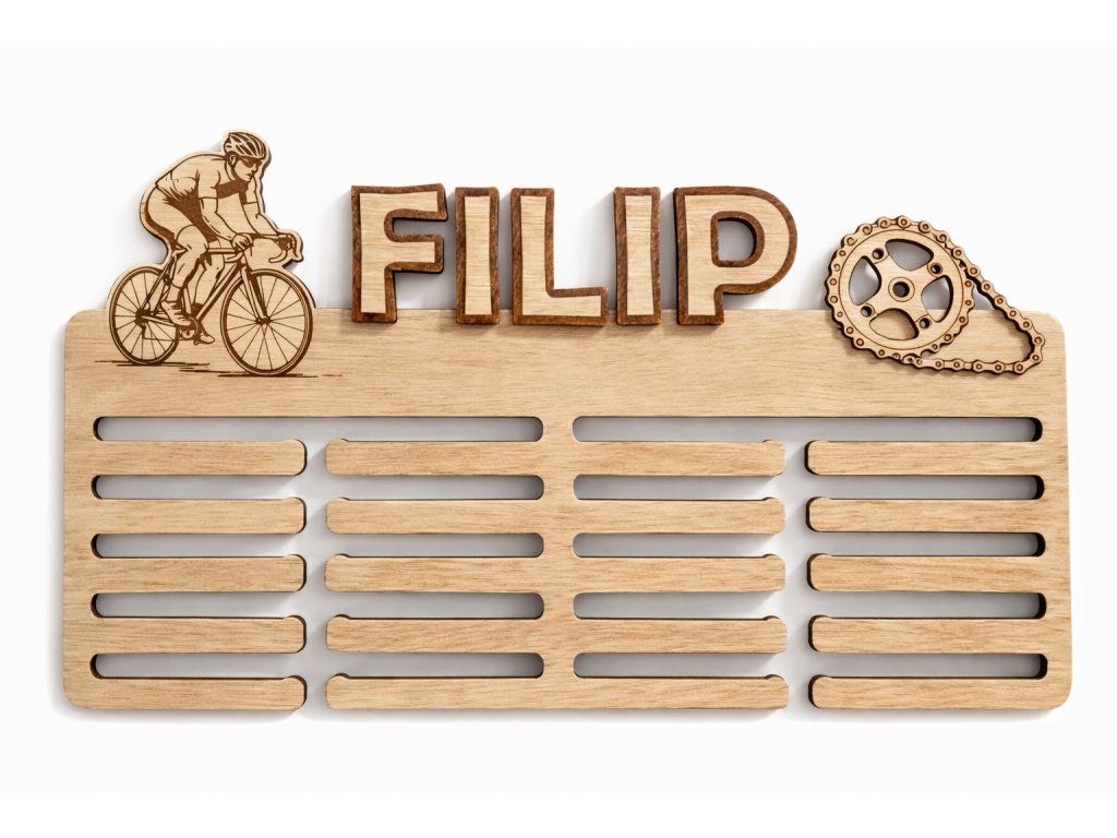Dřevěný věšák na medaile – Cyklista | se jménem