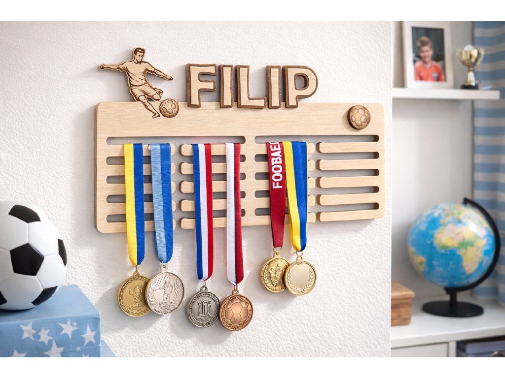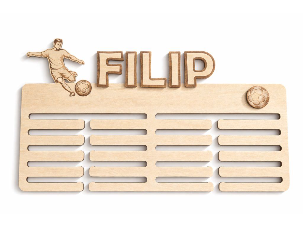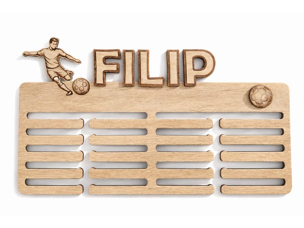 Dřevěný věšák na medaile – Fotbal | se jménem