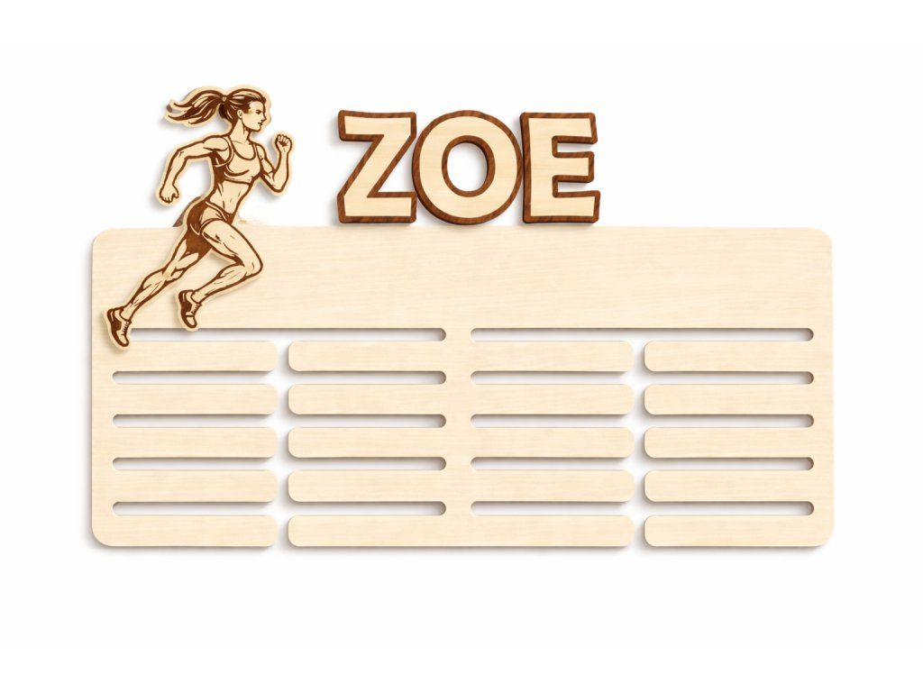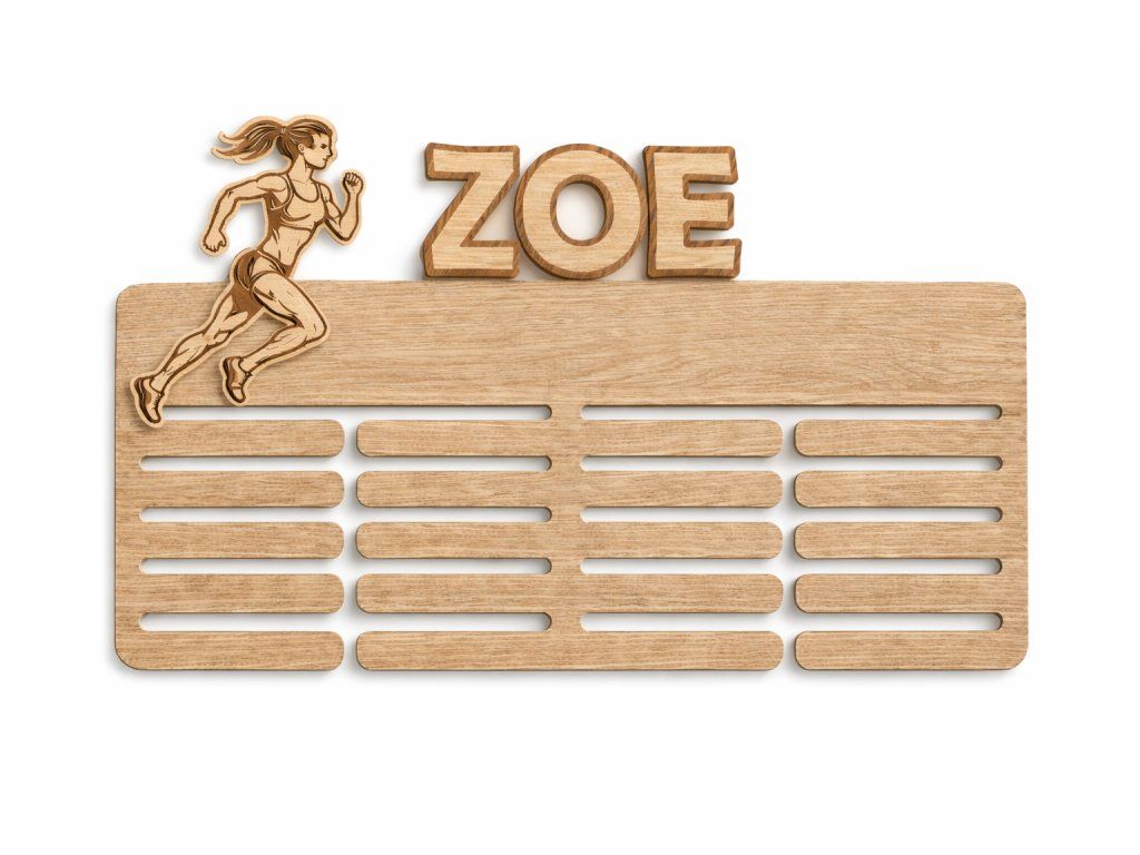 Stylový dřevěný věšák na medaile s motivem běžce je ideální volbou pro všechny atlety, běžce a sportovce, kteří chtějí mít své úspěchy stále na očích. Každá medaile symbolizuje odhodlání, disciplínu a hodiny tvrdé práce – tento věšák jim dává důstojné a přehledné místo.