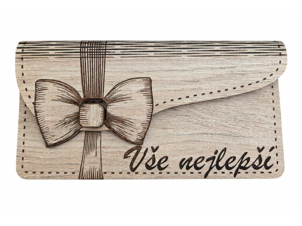 Luxusní dřevěná obálka na peníze - Vše nejlepší k narozeninám, svátku, jubileu