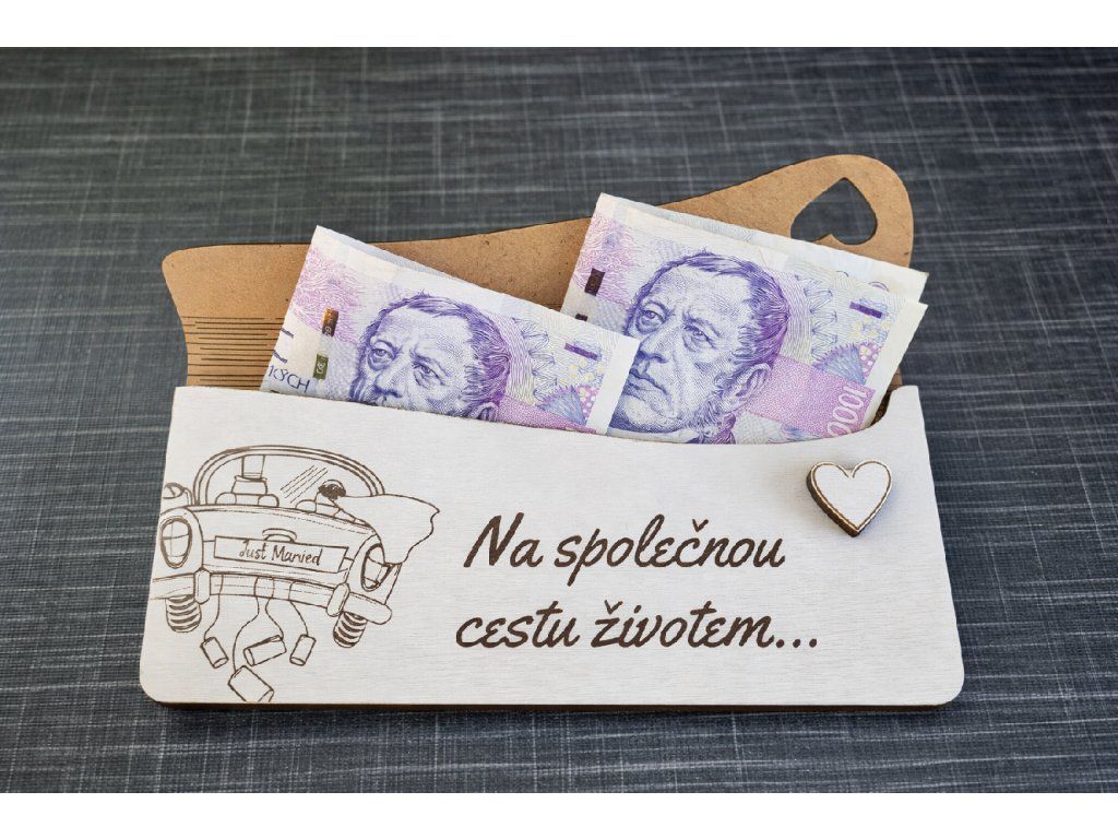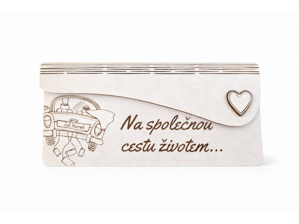 Luxusní svatební dřevěná obálka na peníze - Na společnou cestu životem