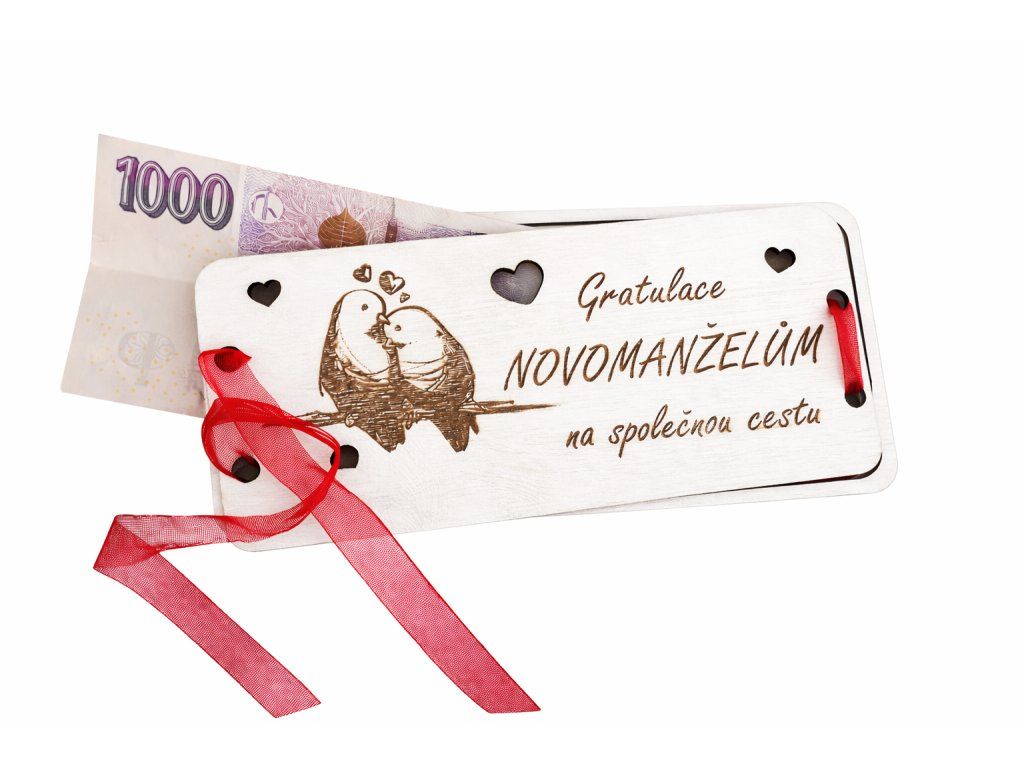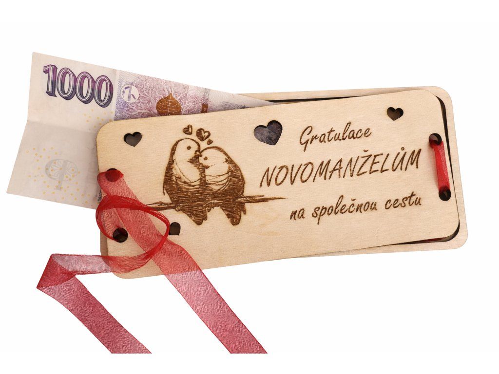 Dřevěná obálka na peníze -svatební hrdličky