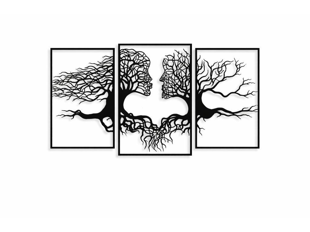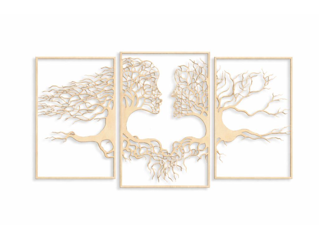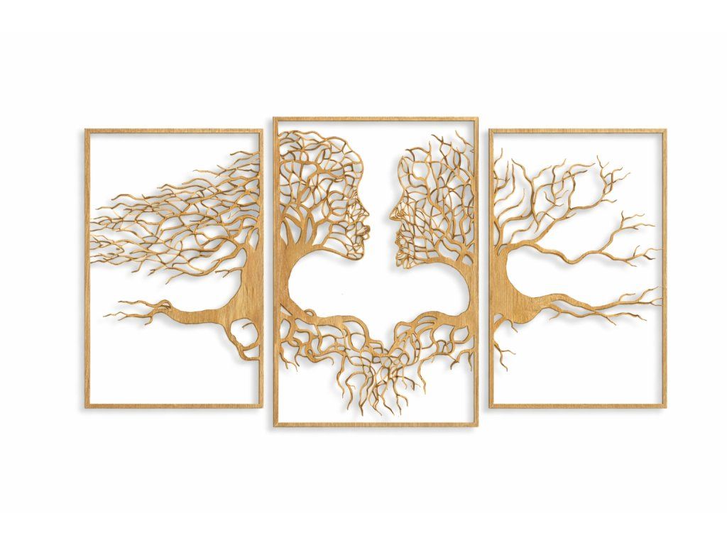 Unikátní dřevěný obraz složený ze tří samostatných částí, který zobrazuje siluety muže a ženy propojené do tvaru ikonického stromu života. Symbolika spojení, rovnováhy a harmonie mezi mužskou a ženskou energií je zachycena v elegantním a zároveň výrazném designu, který zaujme na první pohled.