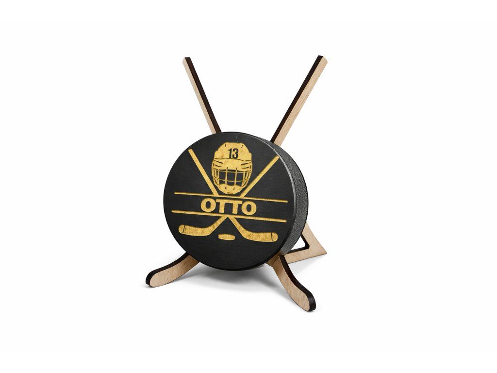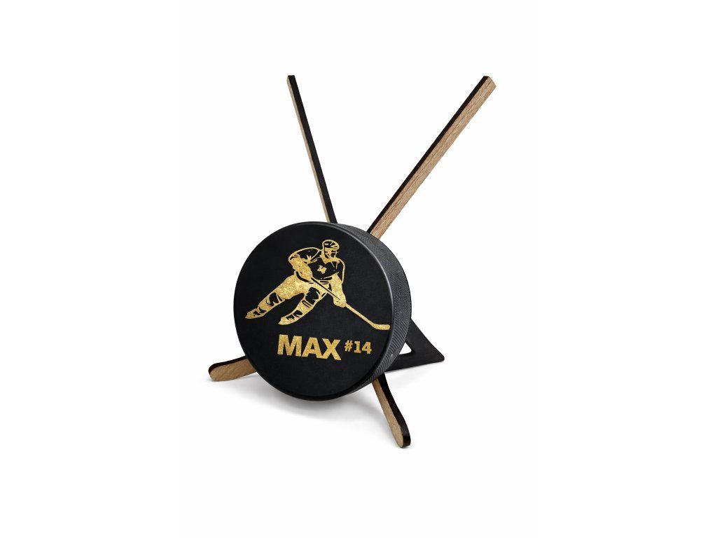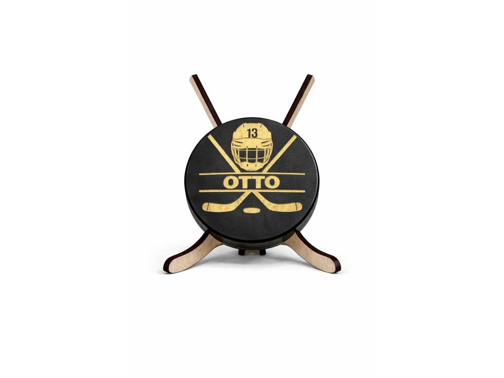 Dodejte svému hokejovému puku důstojné místo, které si zaslouží. Tento dřevěný stojánek na hokejový puk je navržen tak, aby elegantně a stabilně prezentoval puk s gravírováním, památečním motivem nebo oceněním z důležitého zápasu.